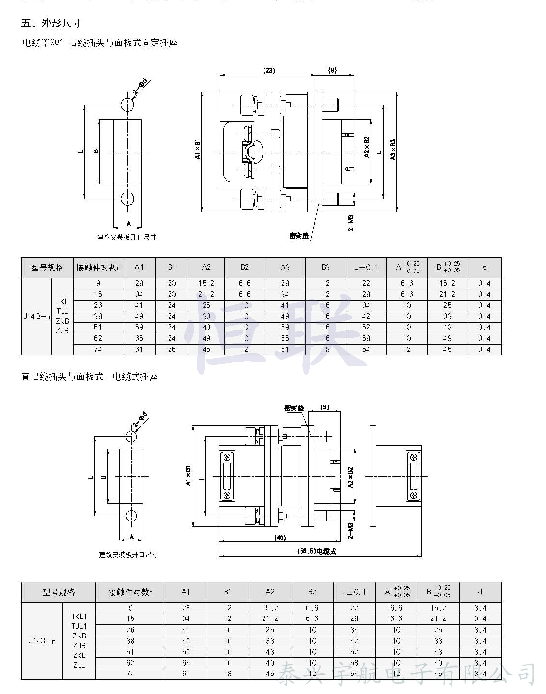 屬于低頻電連接器;螺釘鎖緊機構;圓角防反插設計;電纜罩直出線、90°出線;體積小,重量輕;端接形式為焊接。